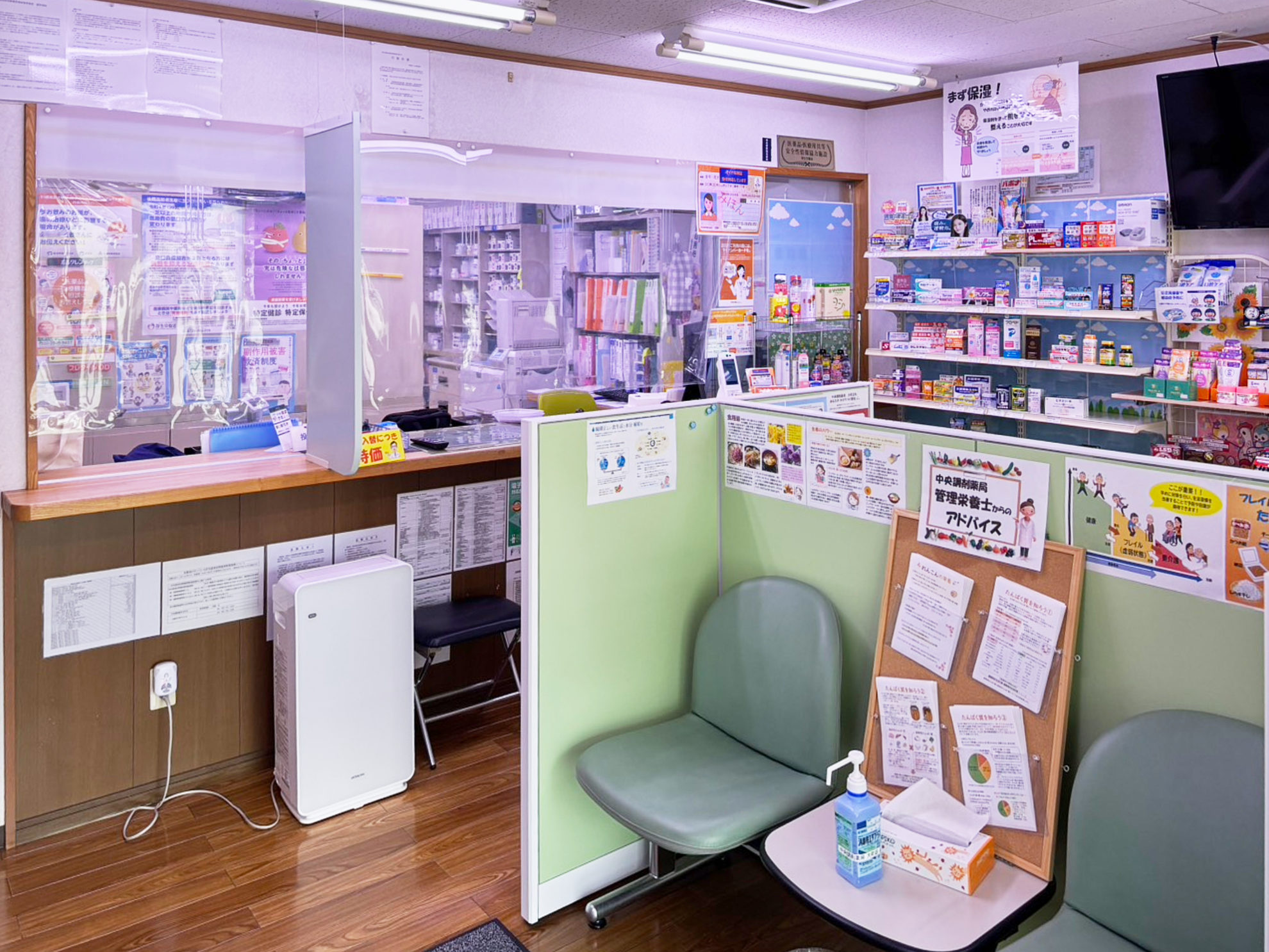 高田地区中心部 大町通りに在ります。近隣の内科医院、眼科医院、耳鼻科医院、県立中央病院、上越総合病院、上越地域医療センター病院、など、幅広く受け付けております。患者様宅、老人ホーム、介護施設への訪問も承っております。毎月2日、7日、12日、17日、22日、27日は前の大町通りで、朝市が開かれています。屋根付きの駐車場が2台あります。スマートフォンからの処方せん送信も受け付けております。土曜日午後も、4時30分まで営業しております。お薬に関すること、お気軽にご相談ください。